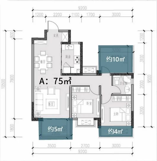 這個戶型放到全南寧,足以吊打很多大牌房企。市面上75平的戶型,別人的客廳開間是3.1-3.25米,但興進(jìn)卻做到了驚人的3.5米,贈送達(dá)19㎡,每間房的尺度,都不小。置業(yè)顧問說,興進(jìn)珺府的公攤極低,僅有15%左右(市面上普遍為20%左右),所以有了更多的贈送空間。除了贈送多之外,興進(jìn)贈送的陽光房,送得很靈活巧妙。仔細(xì)看,發(fā)現(xiàn)它的陽光房,既可以獨立做一間房,與主臥“融合”,把陽光房與主臥改造成舒適的大套間。要不要改,全看你的喜好。