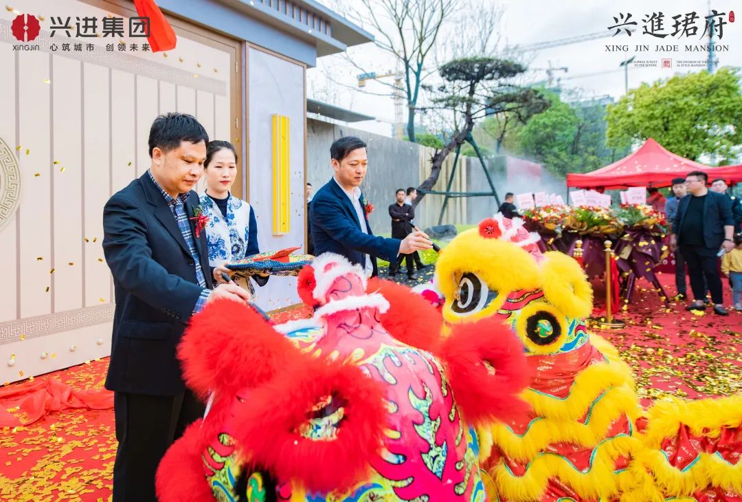 "千古華夏,龍獅為雄;風(fēng)雅珺府,聚氣藏風(fēng);祥獅點(diǎn)睛,承運(yùn)如鵬。"在眾人的見證下,興進(jìn)珺府興進(jìn)集團(tuán)長(zhǎng)沙城市總經(jīng)理管明及相關(guān)領(lǐng)導(dǎo)手持朱砂墨寶,為祥獅點(diǎn)睛,落筆之時(shí),點(diǎn)睛禮成,禮樂奏響,興進(jìn)珺府營(yíng)銷中心大門緩緩打開。