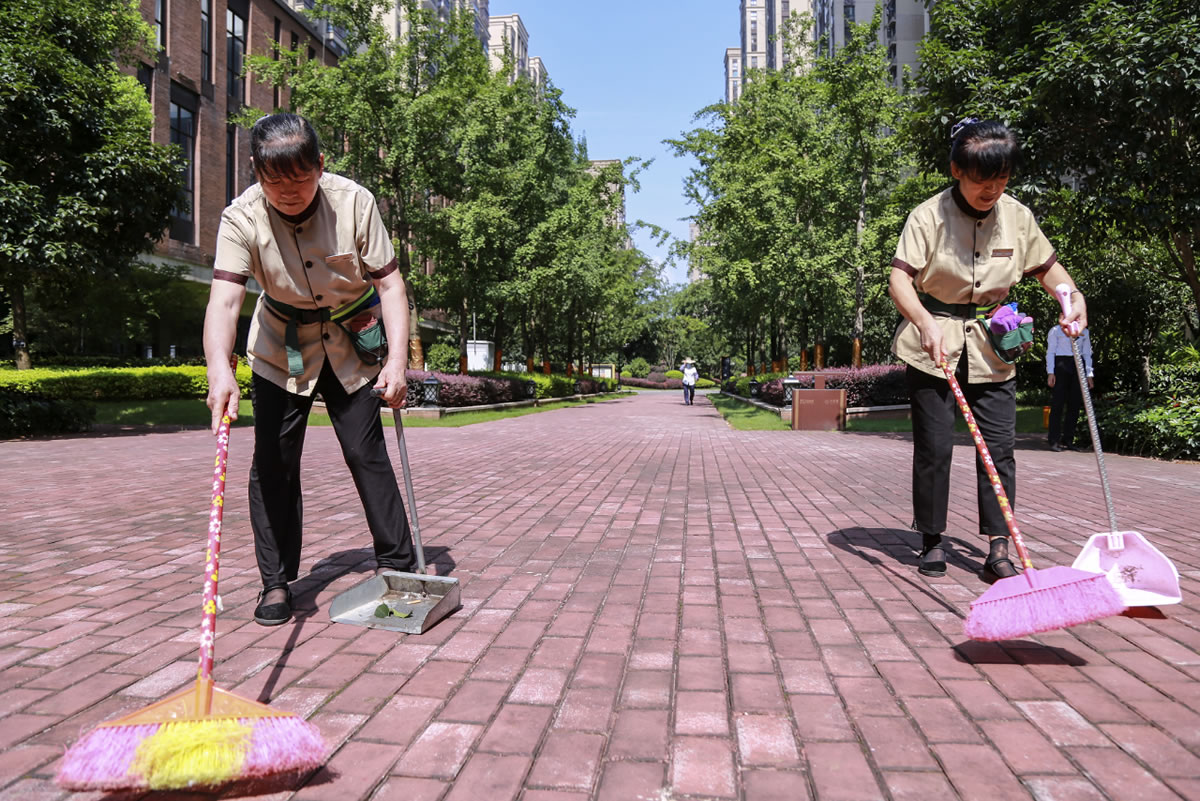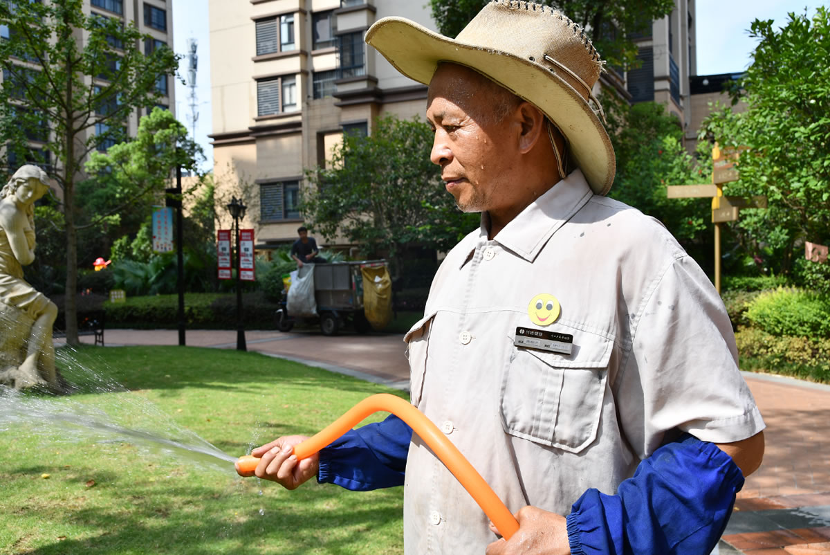 高溫天氣下興進(jìn)各小區(qū)加強(qiáng)了衛(wèi)生保潔工作
