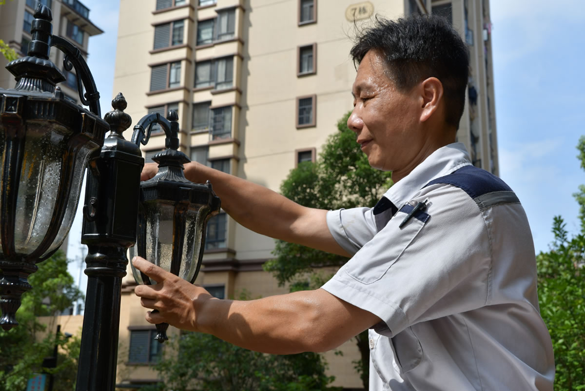 在熾熱的瀝青路面上、在悶熱的樓梯間里、在狹小的電梯管井內(nèi),小區(qū)內(nèi)隨處可見興進(jìn)物業(yè)人揮汗如雨的身影。