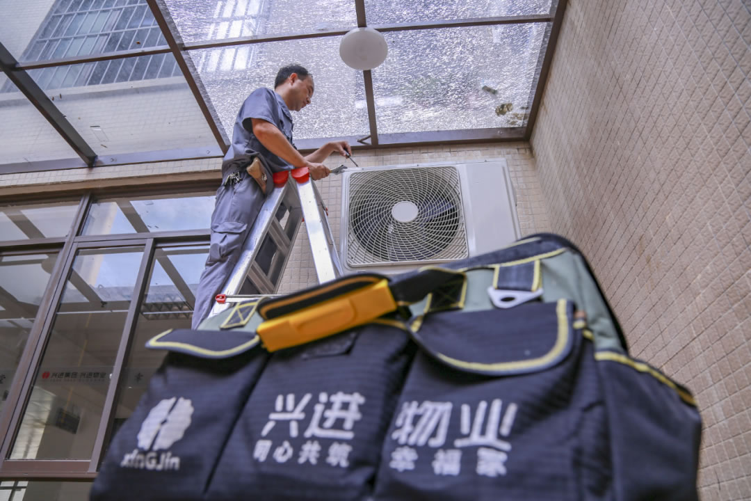 興進(jìn)物業(yè)人在維修空調(diào)