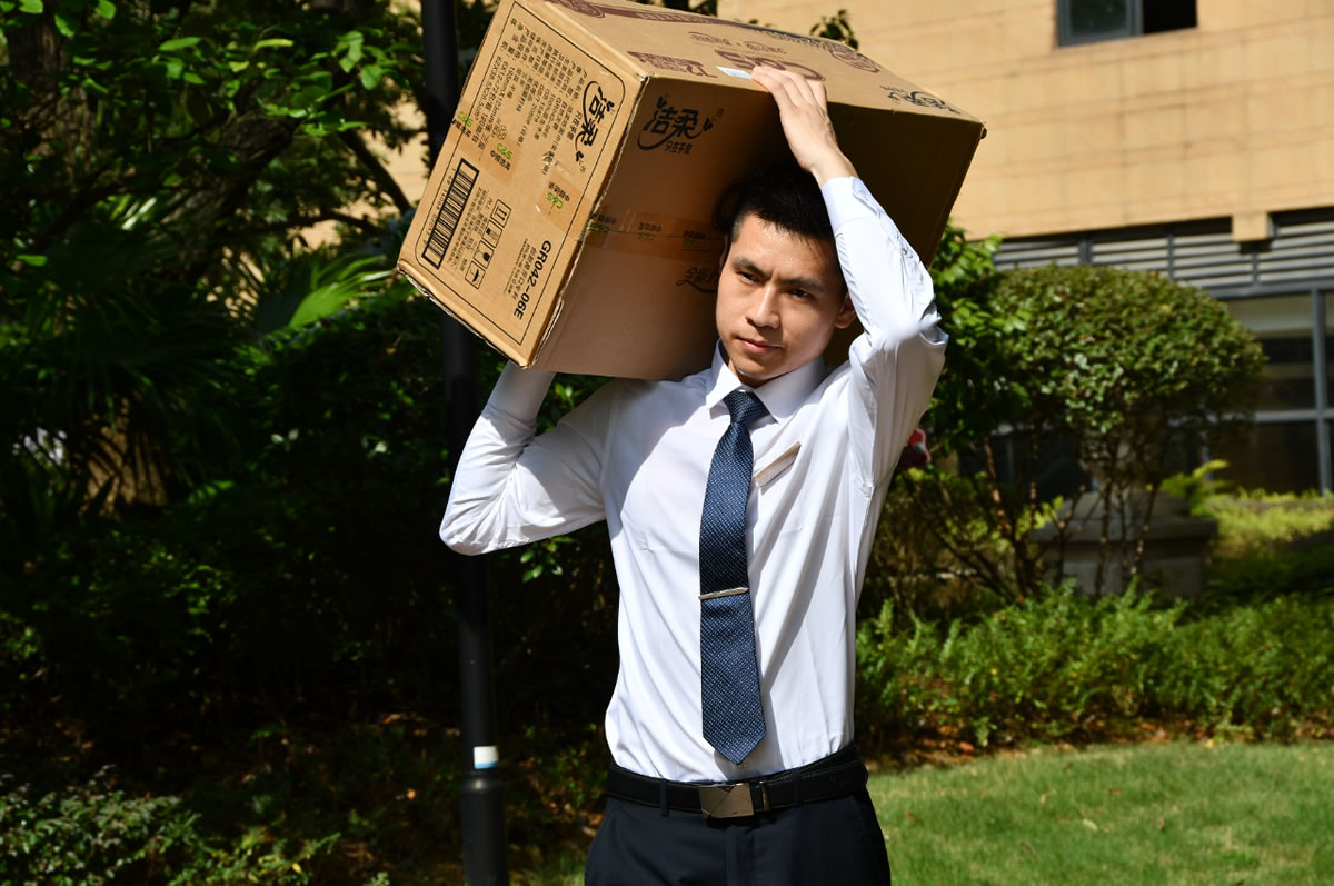 興進(jìn)·上譽(yù)物業(yè)秩序班長穆華坤和隊員張學(xué)、秦串林在正午炙熱的太陽下,幫助業(yè)主搬運(yùn)重達(dá)60公斤的冰箱至頂層閣樓……