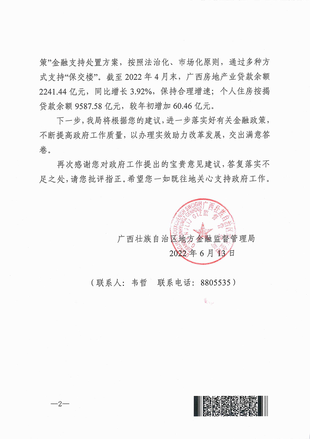 2022年廣西兩會期間,人大代表、政協(xié)委員以飽滿的政治熱情和強烈的責(zé)任擔(dān)當,認真審議和討論各項報告,積極建言獻策。自治區(qū)人大代表、桂林市政協(xié)常委、興進集團董事長羅欣先生提出關(guān)于“希望房地產(chǎn)行業(yè)發(fā)展得到政府的支持及金融企業(yè)的支持”意見建議,得到廣西壯族自治區(qū)住房和城鄉(xiāng)建設(shè)廳回函。