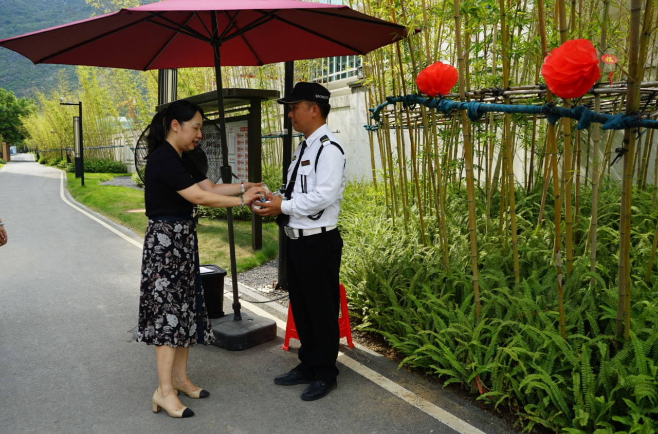 興進(jìn)集團(tuán)黨支部書記羅捷、集團(tuán)副總裁王敏、興進(jìn)物業(yè)服務(wù)集團(tuán)總經(jīng)理王永忠、集團(tuán)黨支部宣傳委員陳健帶領(lǐng)黨員代表一行,為奮戰(zhàn)在交付一線的項目、物業(yè)、營銷員工以及集團(tuán)交房支援人員送去解暑清涼慰問品,讓堅守在崗位的一線員工們感受到絲絲清涼和濃濃關(guān)懷。
