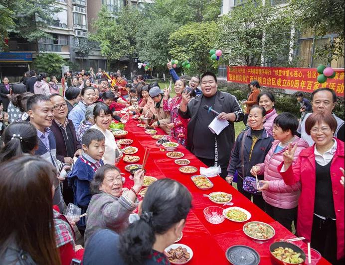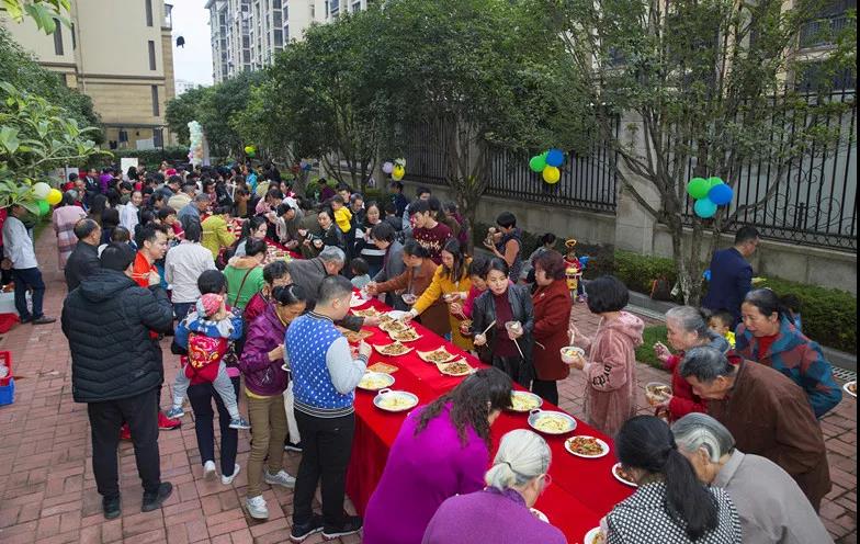 每一場幸福家宴,都是活動的高潮點,人聲鼎沸,一片歡聲笑語。業(yè)主們來來回回,忙個不停,從家里端出自己精心準備的菜品,與街坊鄰居互相分享美食,在小區(qū)擺開了露天的幸福宴席。