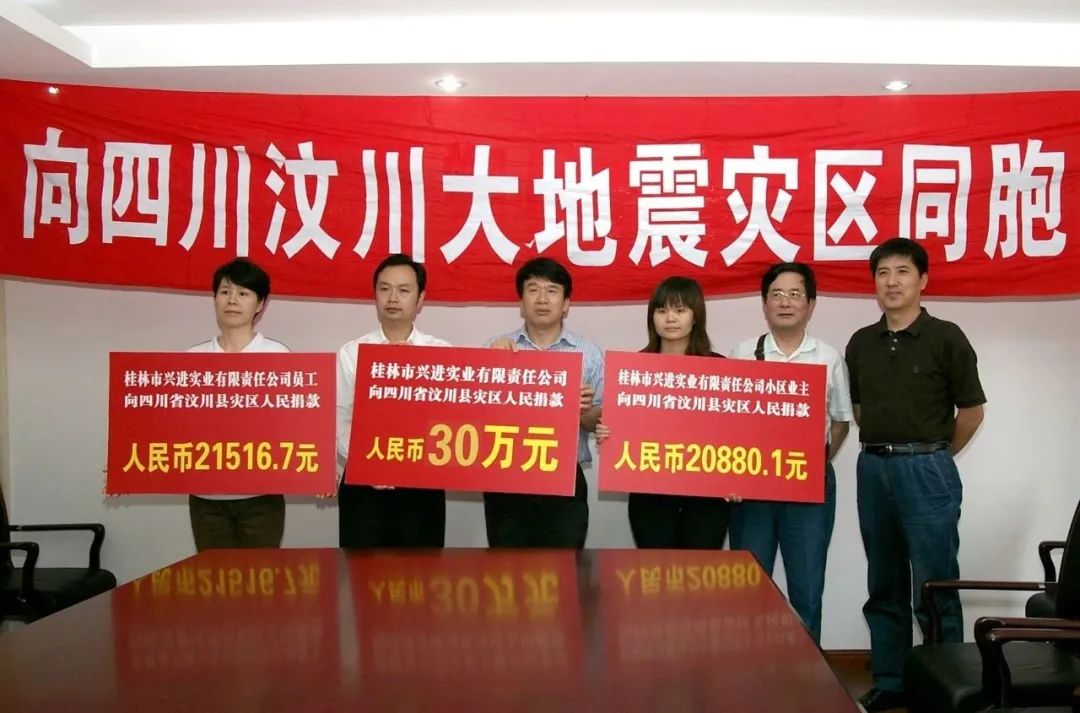 在救助災(zāi)難方面,興進(jìn)集團(tuán)更是不遺余力:2005年向印尼海嘯災(zāi)區(qū)捐款2萬(wàn)元;2008年向汶川地震災(zāi)區(qū)捐款34.3萬(wàn)元,向遭受冰凍災(zāi)害地區(qū)捐款捐物11.3萬(wàn)元;2009年向臺(tái)灣因海嘯受災(zāi)的同胞捐款1萬(wàn)元;2010年向青海玉樹(shù)抗震救災(zāi)捐款1萬(wàn)元;2017年,為龍勝縣金江村委會(huì)火災(zāi)救助捐款20萬(wàn)元,幫助雁山鎮(zhèn)茶江村完成水毀修復(fù)工程捐資8.3萬(wàn)元。