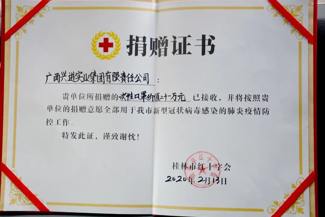 2020年,疫情肆虐的一年,興進(jìn)集團(tuán)第一時(shí)間啟動(dòng)應(yīng)急捐贈(zèng),向武漢市江夏區(qū)紅十字會(huì)、桂林市第二人民醫(yī)院、自治區(qū)南溪山醫(yī)院、桂林市紅十字會(huì)等15家抗疫一線單位,捐助抗疫善款及醫(yī)療物資,總金額超168萬(wàn)元,用鐵肩擔(dān)當(dāng)、愛(ài)心善舉助力疫情防控。