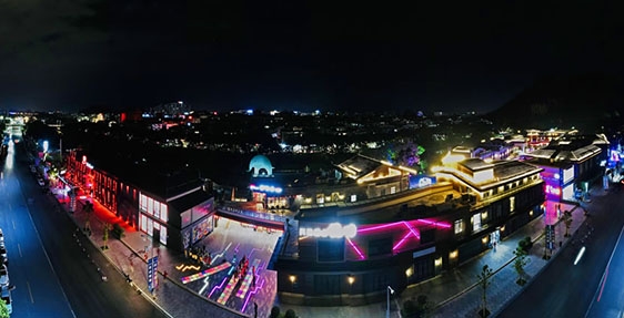 興進塔山悅坊是興進塔山·漓江文化旅游度假區(qū)的國際風(fēng)情酒吧街區(qū),集時尚主題酒吧、音樂餐吧、特色美食、潮流娛樂為一體,悅坊致力于打造桂林夜生活新地標,為桂林的夜生活帶來全新的美好體驗。悅坊總建筑面積約1.7萬㎡,緊鄰小東江,與穿山塔山相望,風(fēng)景旖旎,環(huán)境舒適。項目通過美陳氛圍、裝置藝術(shù)、光影變幻,營造個性十足的生活空間,打造輕松時尚的休閑社交氛圍,將為桂林人提供理想的社交歡聚場所和非凡的夜生活體驗!悅坊匯集時尚主題酒吧、音樂餐吧、特色美食、潮流娛樂活動為一體。目前奧斯卡、CLUB MEME、音悅坊、COMMUNE、AG PARTY K、PLAY GANG、貳麻酒館、九月民謠、龍居鐵板燒日料、陳鴨腸老火鍋、KMC等知名品牌在此齊聚。多元化的知名品牌組合,不同業(yè)態(tài)的精彩演繹,塔山悅坊已成為桂林乃至廣西的娛樂夜經(jīng)濟新打卡朝圣地。